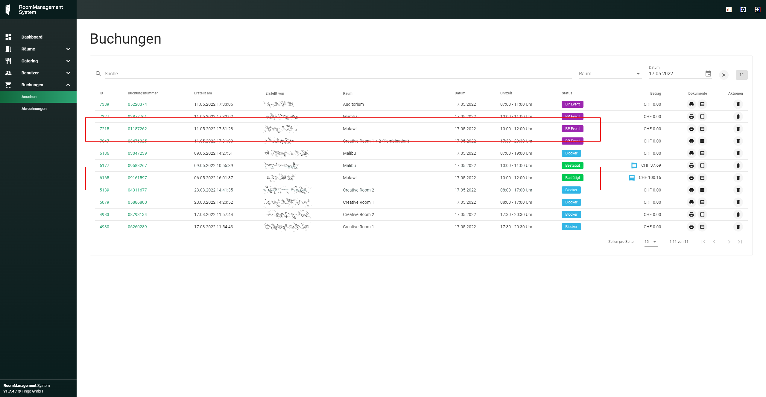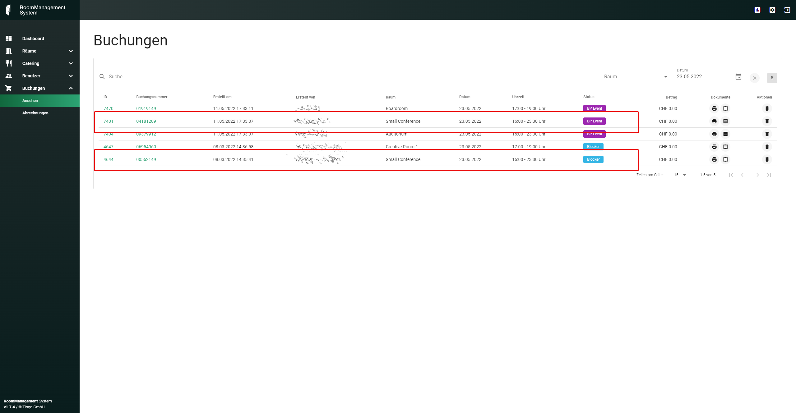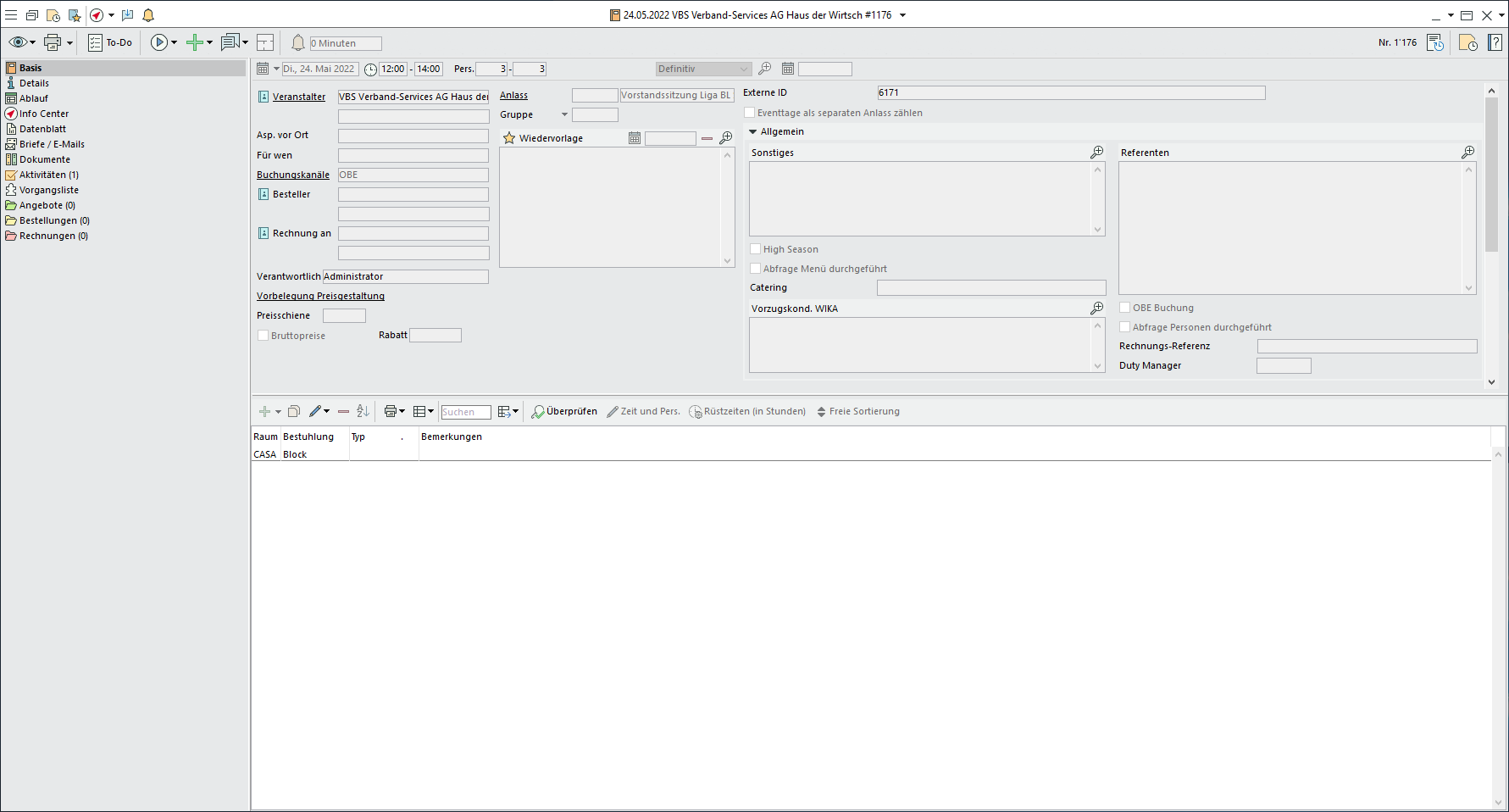 In dieser Version wurde die Schnittstelle zwischen «RoomManagement System» und «Bp Event» in Betrieb genommen. Folgendes wird zwischen den beiden System hin- und her synchronisiert.